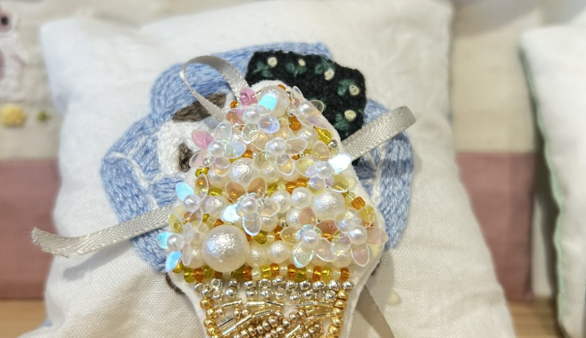 こんにちは☺HanaLinoです! 本日の作品をご紹介します(*´ω`*) ビーズ刺繍でおいしそうなソフトクリームを作っていただきました✨ キラキラ、つやつやでとてもおいしそうなソフトクリーム … 続きを読む 作品紹介🍧✨