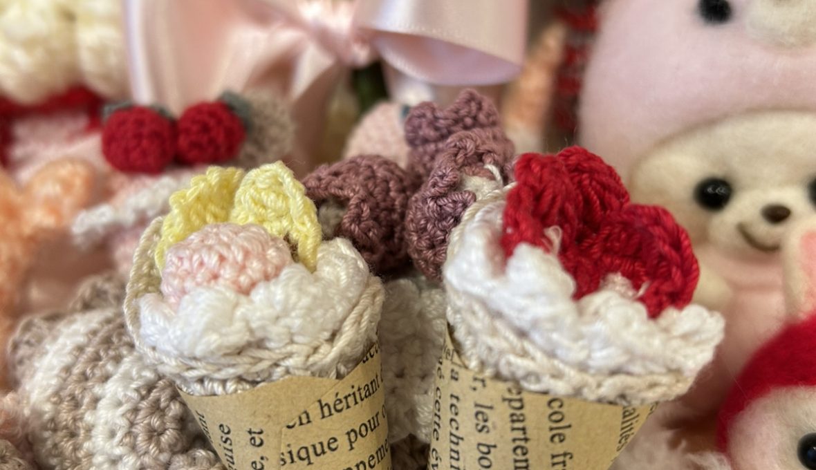 こんにちは(‘ω’)HanaLinoです!本日の作品をご紹介します✨ かぎ編みでクレープを作っていただきました🎵 いちごとバナナがとてもおいしそうです~(*´ω`*) … 続きを読む 作品紹介☺