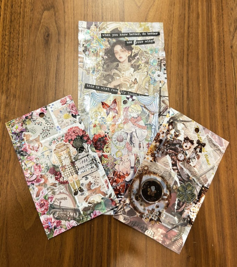お花やアンティークなシールが重ねられていて、とてもかわいいですね☺