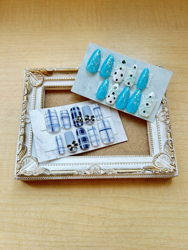 水色ネイルは、ラメとドットの組み合わせがとてもかわいいですね(*´ω`*)