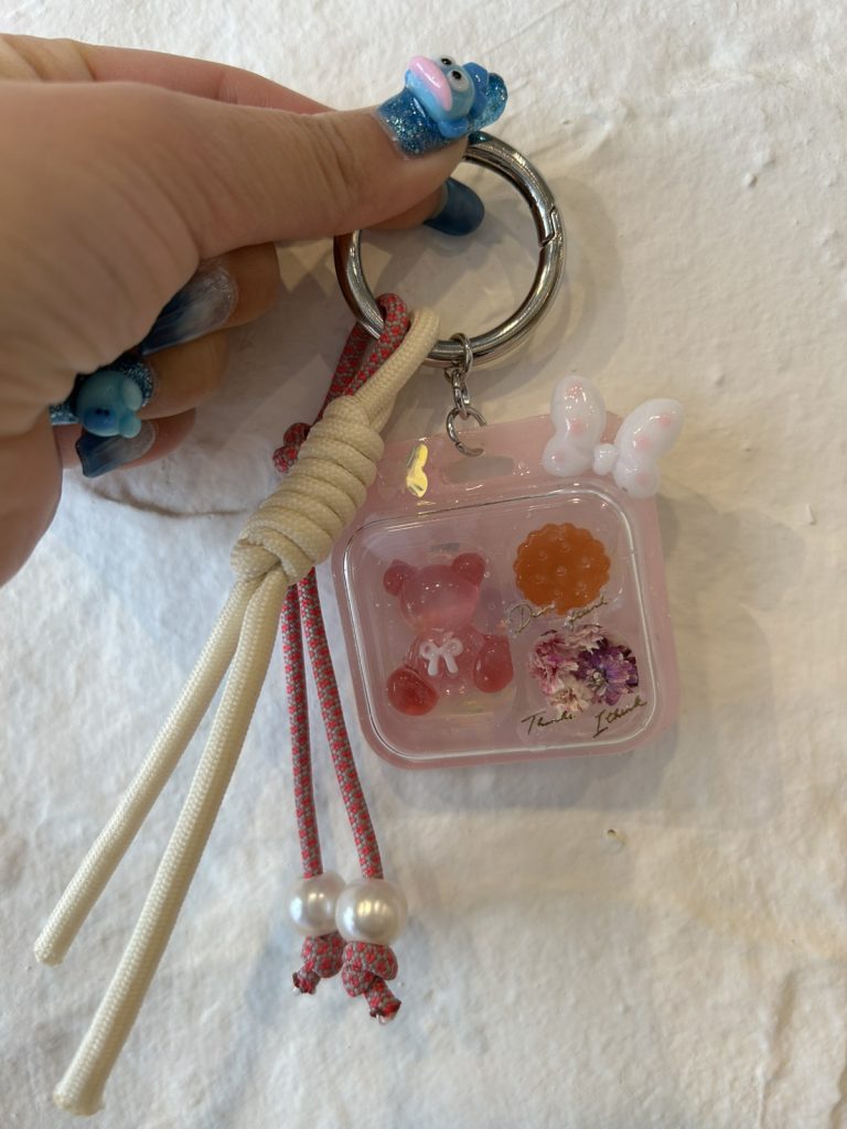 レジンとパラコードを組み合わせてかわいいキーホルダーを作っていただきました🧸💘